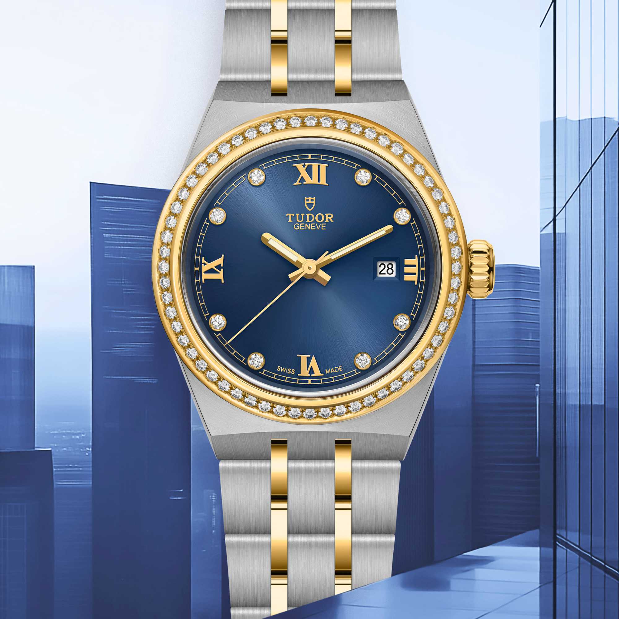 Ref. M28323-0002 - Diese TUDOR Royal mit einem auffälligen blauen Zifferblatt und Diamanten wird Ihnen vom TUDOR Markenbotschafter Cheng Yi vorgestellt. Cheng Yi, ein berühmter chinesischer Schauspieler, ist einer jener Menschen, die die Grenzen stets neu definieren und das Unbekannte wagen. Die TUDOR Royal verkörpert seinen Antrieb, sich vom Rest abzuheben und zu glänzen.